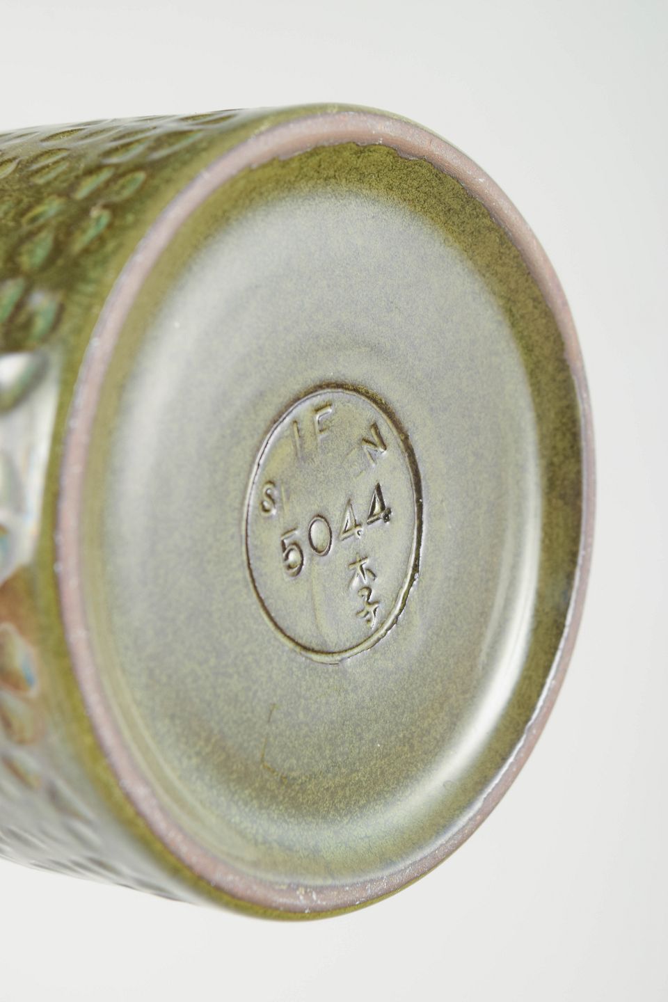 His works for Upsala-Ekeby are noted for their experimental use of clay and glaze, combined with decorative motifs that reflect his East Asian cultural heritage.