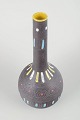Hand-painted ceramic vase with a slender neck and decorative geometric pattern in black, blue, yellow, and red. A fine example of Italian studio pottery from the 1960s, featuring vibrant colours and a graphic expression.