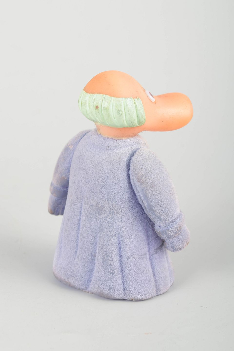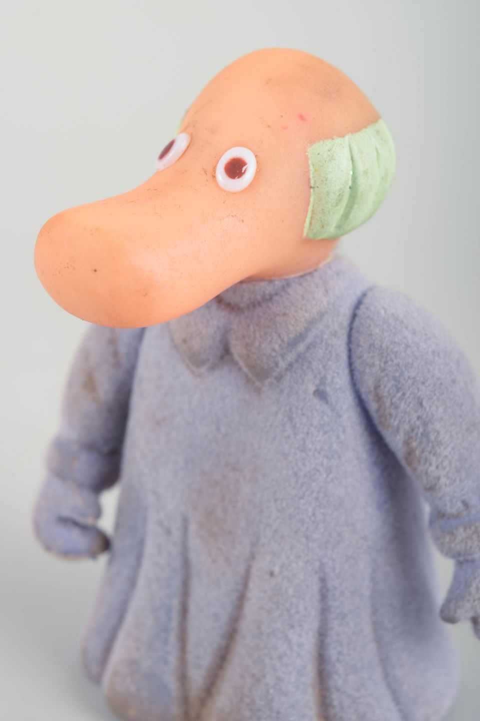 Collectible figurine of Hemulen from the Moomin universe, made of soft plastic with distinctive modelling and lilac outfit. Produced by Martinex, Finland. A classic piece of Moomin merchandise from the late 20th century.