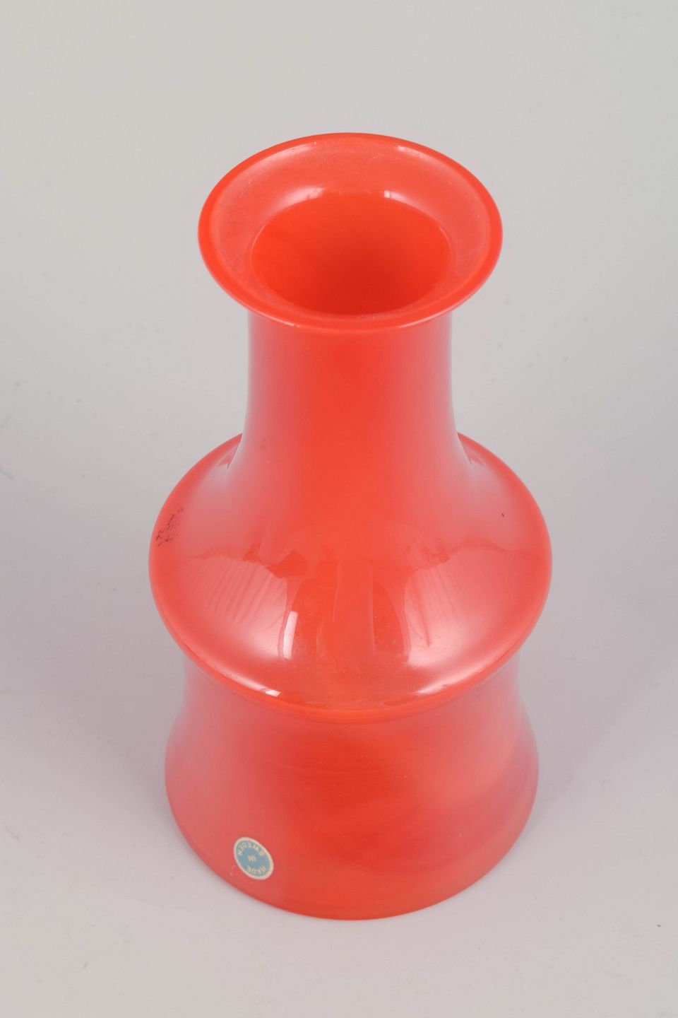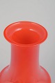 Mouth-blown vase in vivid orange glass with an elegant cylindrical body and flared neck. A fine example of 1970s Swedish glass design, combining strong colour and sculptural form in a distinctive period expression.