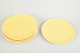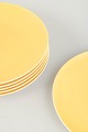 Sæt af seks "Susanne" middagstallerkener i fajance fra Aluminia i den karakteristiske gule “Confetti”-glasur. Enkel og tidstypisk formgivning med bløde linjer og glat overflade – et klassisk eksempel på dansk funktionalistisk design fra perioden.