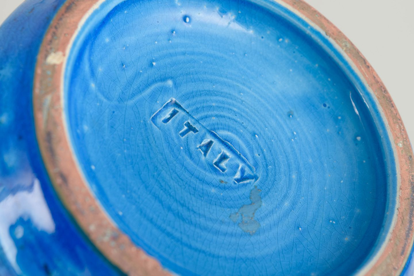 Aldo Londi (1896–2003) served as artistic director at Bitossi in Montelupo Fiorentino for over four decades and created the company’s most famous series, including the “Rimini Blu” line launched in the 1950s. The series combines handmade terracotta, deep relief patterns, and vibrant blue-green glazes, making it a hallmark of Italian modernism and postwar ceramic artistry.