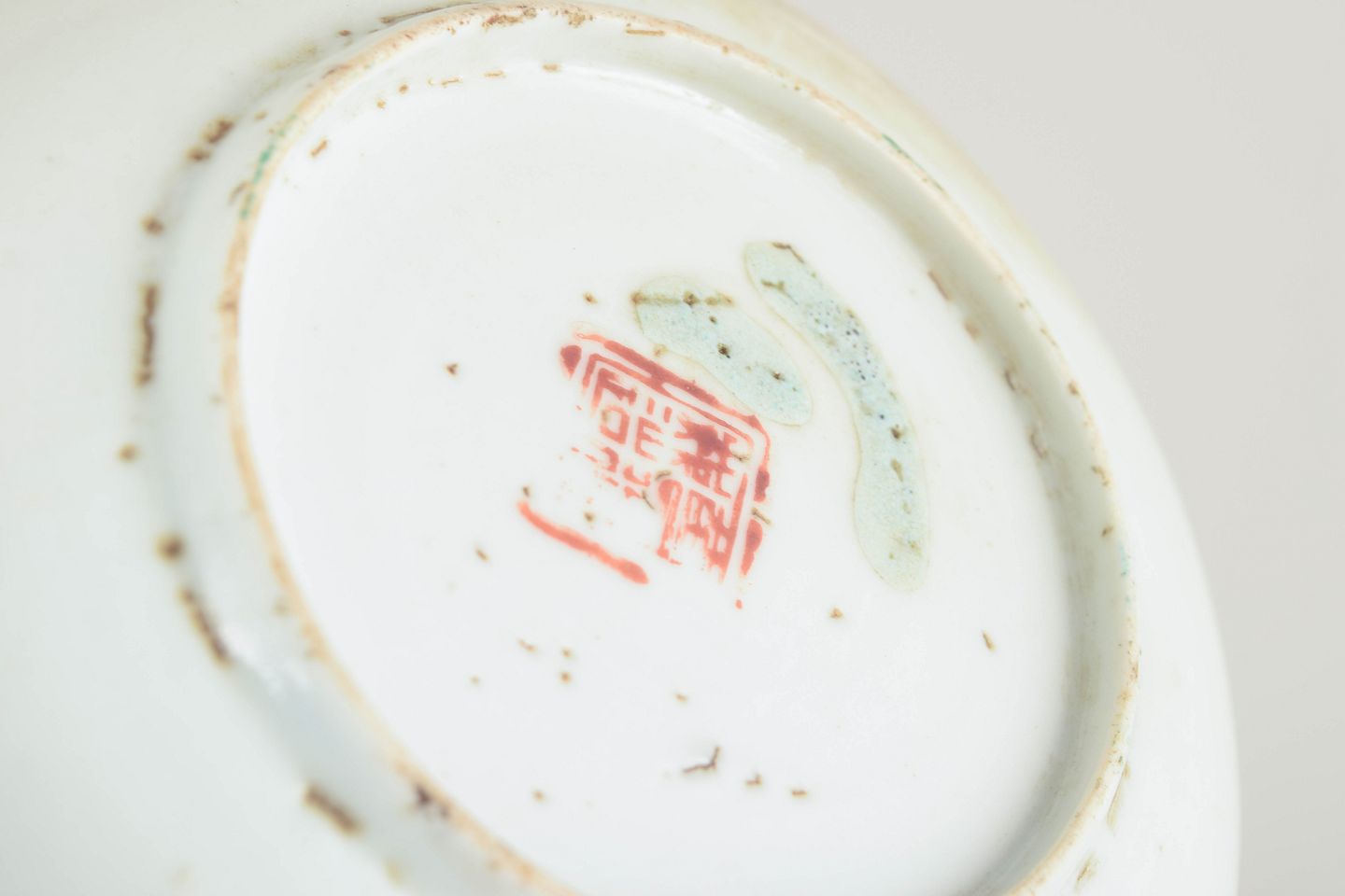 Famille rose porcelain was developed in the early 18th century during the Qing dynasty and became renowned for its soft, opaque enamel colours—especially pink—introduced through European techniques. These porcelains were highly prized in both China and Europe for their refined aesthetics and detailed painting, often produced as export ware throughout the 18th and 19th centuries.