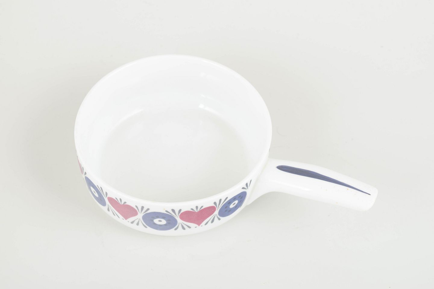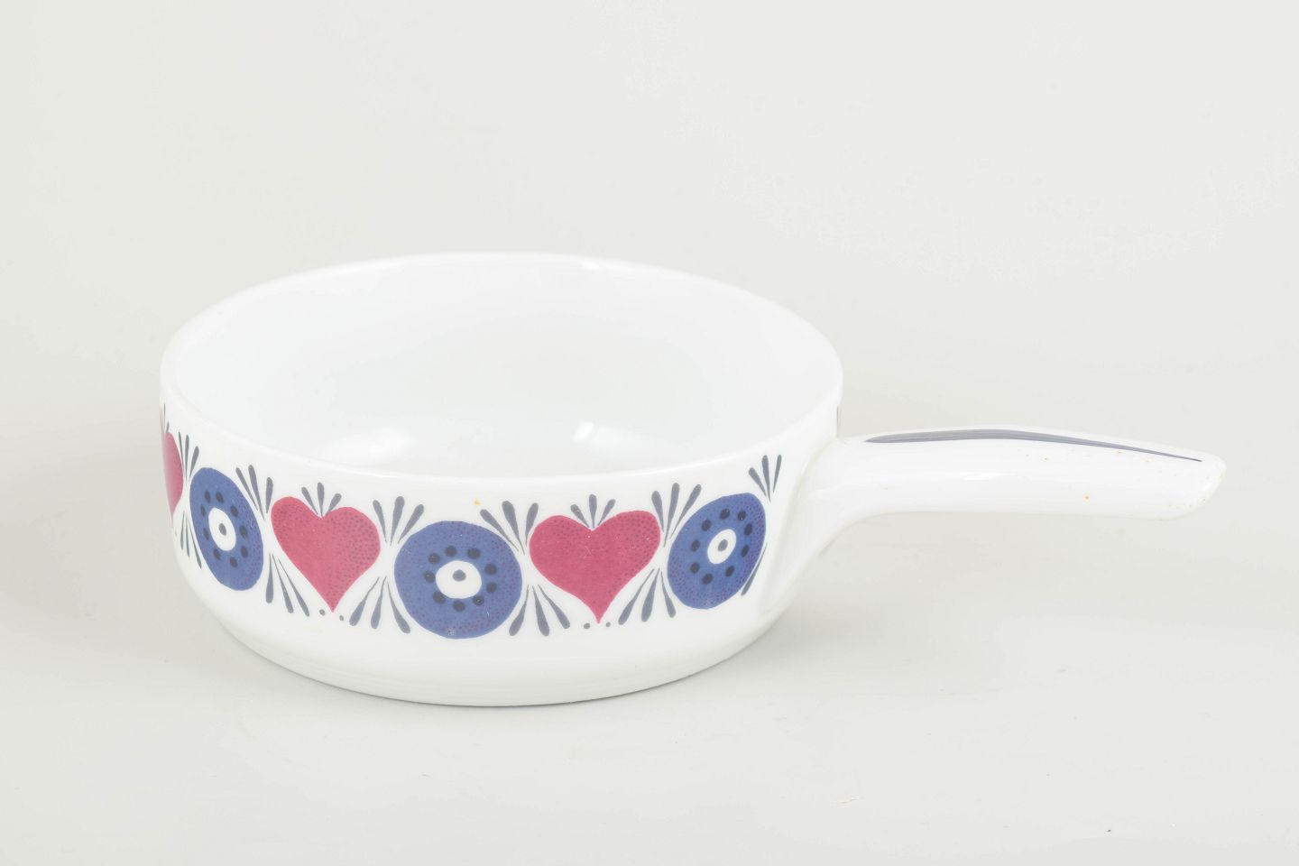 Dekoreret med Westmans ikoniske retroblomstermotiv i blå og rosa på hvid bund. Fremstillet i Rörstrands varmebestandige “El-Fast” stentøj, velegnet til både ovn og servering.
