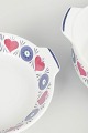 Dekoreret med Westmans karakteristiske retroblomstermotiv i blå og rosa på hvid bund. Serien Silja blev produceret som del af Rörstrands “El-Fast” stentøj – praktisk, varmebestandigt og dekorativt på bordet.