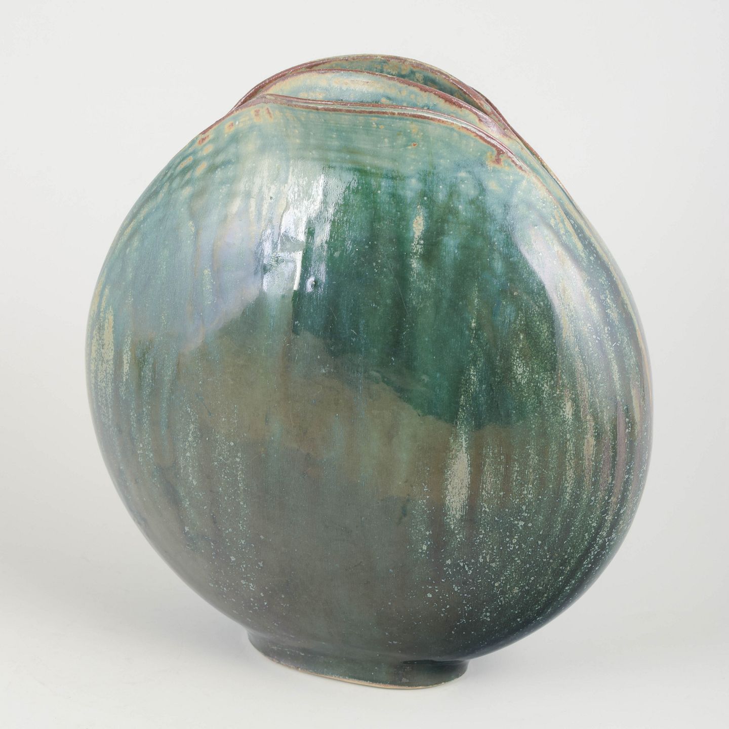 Studio ceramics in the 1980s often embraced sculptural and expressive forms, with many makers exploring organic silhouettes and natural surface movement. Glazes were used not only decoratively but as an active part of the form, creating dynamic surfaces and depth. Pieces like this illustrate the era’s shift toward freer abstraction and individual artistic expression within European ceramic art.