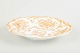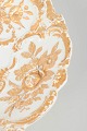 Large and richly decorated porcelain dish by Meissen, featuring elaborate hand-painted gilt ornamentation and detailed rococo-style relief. The pronounced floral and scrollwork elements give the dish a luxurious and characteristic late-19th-century appearance.