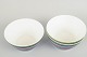 Three colourful porcelain bowls from the iconic Origo series, decorated with the characteristic multicoloured horizontal stripes.