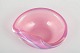 Lille, organisk formet skål i mundblæst glas med bløde kurver og delikat farvespil i rosa og lavendeltoner, typisk for Murano glas fra perioden.