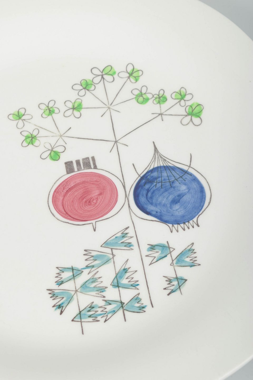 Marianne Westman (1928–2017) var en af Rörstrands mest populære designere i 1950’erne og 60’erne og stod bag ikoniske serier som “Picknick” og “Mon Amie”. Hendes arbejder kendetegnes af legende motiver, klare farver og et modernistisk formsprog, der gjorde hverdagsstel til dekorative designobjekter. I dag er hendes værker højt værdsat blandt samlere af skandinavisk keramik og design.