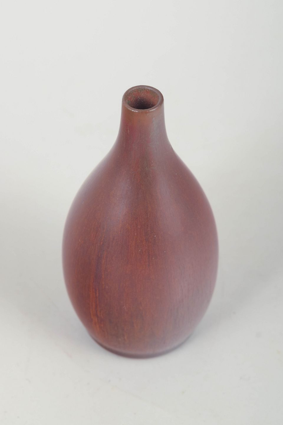 Elegant drop-shaped stoneware vase with a dark, silky matte reddish-brown surface – a classic example of Stålhane’s refined sense of form, balance, and material.