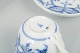 Håndmalet i klassisk “løgmønstret” (Zwiebelmuster) blå-hvide dekoration med bølget kant og fint reliefporcelæn.