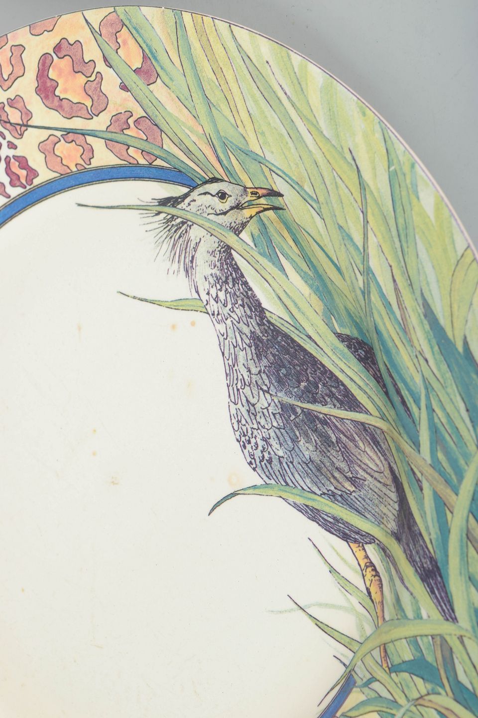 To dekorative fajancetallerkener fra Gien i det karakteristiske “Savane”-mønster med farverig bort og naturalistisk motiv.