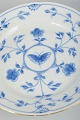 Smukt sæt på otte desserttallerkener med håndmalet sommerfuglemotiv og blå blomsterornamentik, afsluttet med en elegant guldkant.
