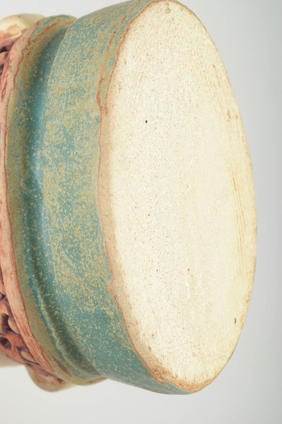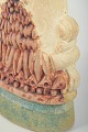 Skulpturel håndglaseret vase i stentøj, typisk for Rookes organiske formsprog med kraftige reliefelementer og taktil overflade.