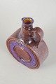 Decorative Italian wine carafe in glazed terracotta with a characteristic circular relief motif and purple glazed centre. The organic shape, softly curved handle and bold colour palette reflect classic Bitossi design from the period.