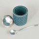 Dimensioner: H. 14 cm inkl. låg, D. 9 cm. Ske: 18 cm.