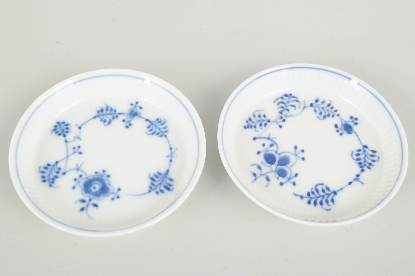 Royal Copenhagen Musselmalet Riflet flaskebakker, sæt af 2, 1980’erne.
