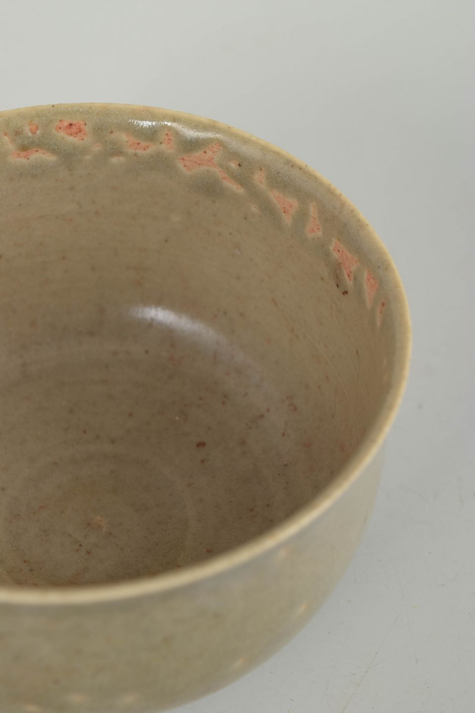 Drejet skål i stentøj med afrundet form og let indadbøjet rand. Udført med lys, sandfarvet glasur med diskrete variationer og fine glasurspil langs kanten. Signeret i bunden, produceret hos Höganäs i 1970’erne.