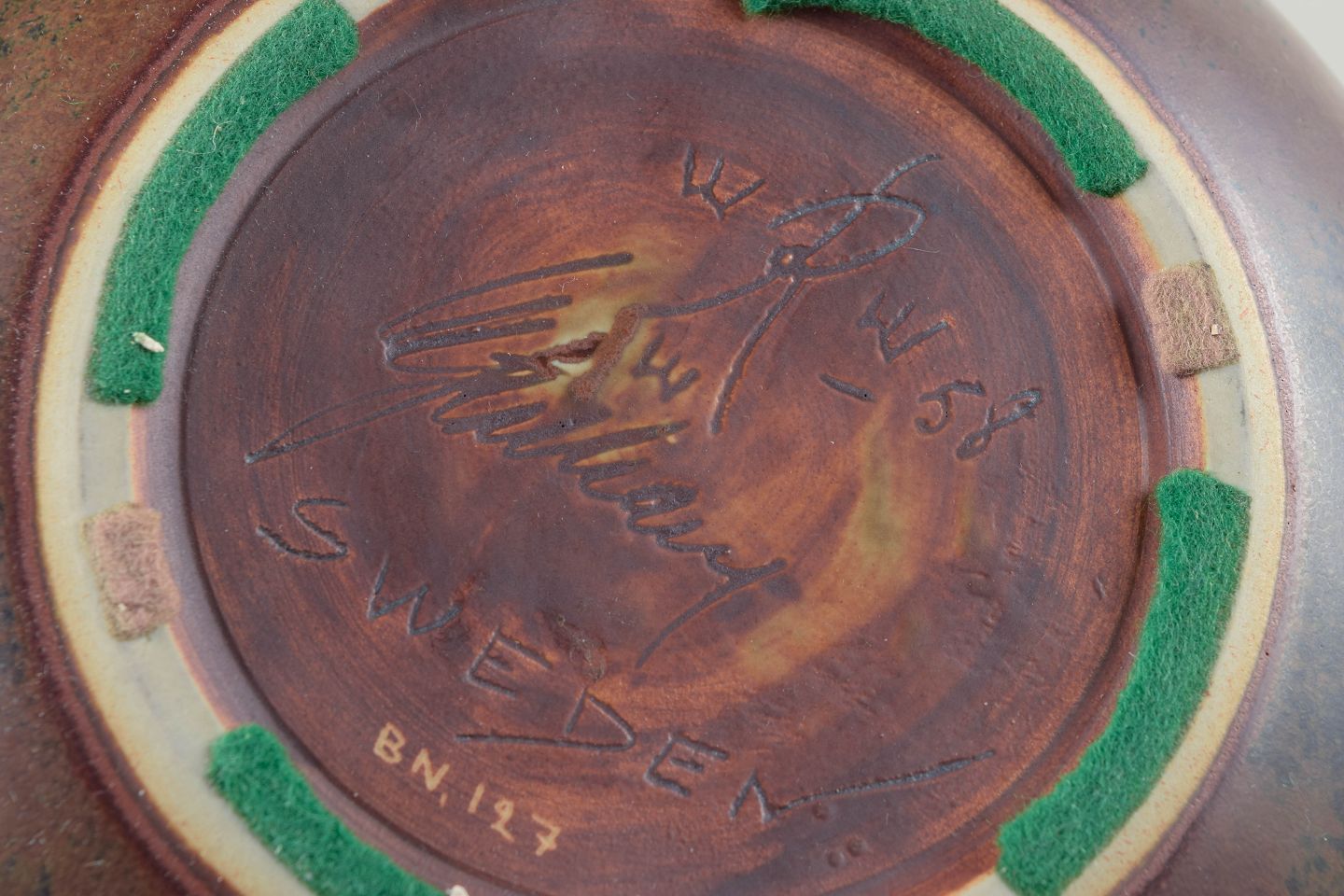 Carl-Harry Stålhane was a key figure in Swedish studio ceramics and served as artistic director at Rörstrand from the 1950s. His work is distinguished by sculptural forms, graphic decoration, and innovative glaze techniques. Unique pieces from this period are today regarded as highly desirable examples of Nordic ceramic art.