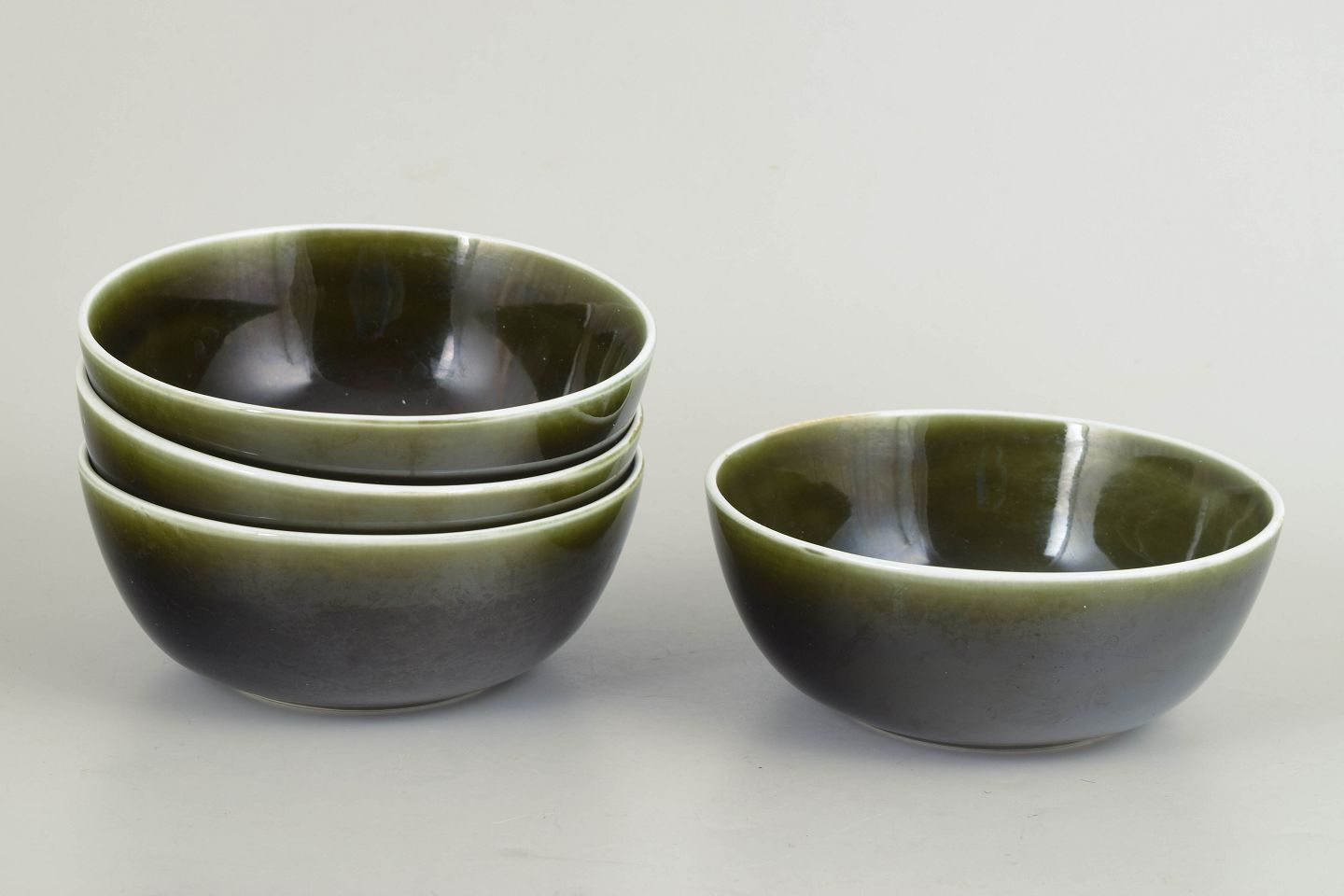Set of four stoneware bowls from the Vardag series with a characteristic green glaze. Simple, functional forms designed for everyday use, expressed in a calm and timeless Scandinavian modernist style.