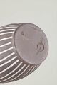 Slank, aflange vase i stentøj med karakteristisk håndmalet hvid stribedekor på mørk brun bund. Elegant, nordisk modernistisk formsprog.