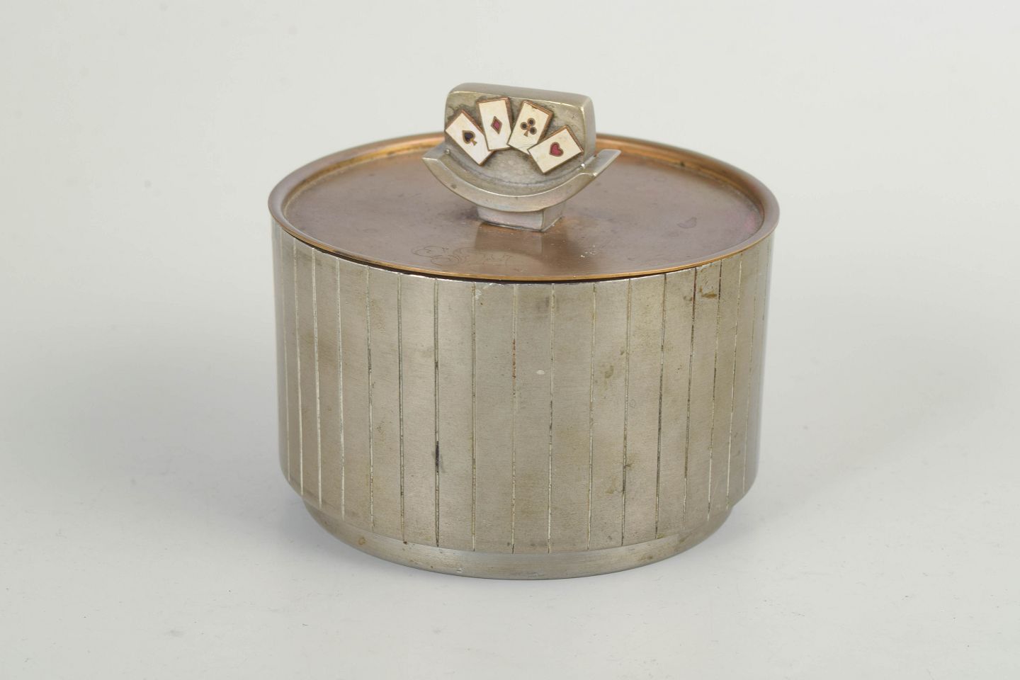 GAB, Guldsmedsaktiebolaget in Stockholm, was a prominent producer of metal arts and decorative objects in the first half of the 20th century. During the Art Deco period, games and social accessories were also designed with the same focus on aesthetics, material quality, and functionality. The combination of pewter and enamel gives this piece an elegant and period-typical expression, where design and entertainment merge seamlessly.