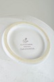 Stor, organisk formet skål i glaseret keramik med svagt bølgende relief og fin gulddekoration. Udført i studiohand, “Guldsurrea”.