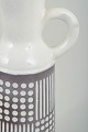 Høj, slank kande i glaseret keramik med smal hals og enkelt hank. Underdelen er dekoreret med et stramt, grafisk mønster af prikker og lodrette linjer i hvid mod brun bundglasur, mens overdelen er udført i hvid glasur. Det rytmiske dekorationsfelt giver kanden et klart modernistisk udtryk. Modelnummer 4564.