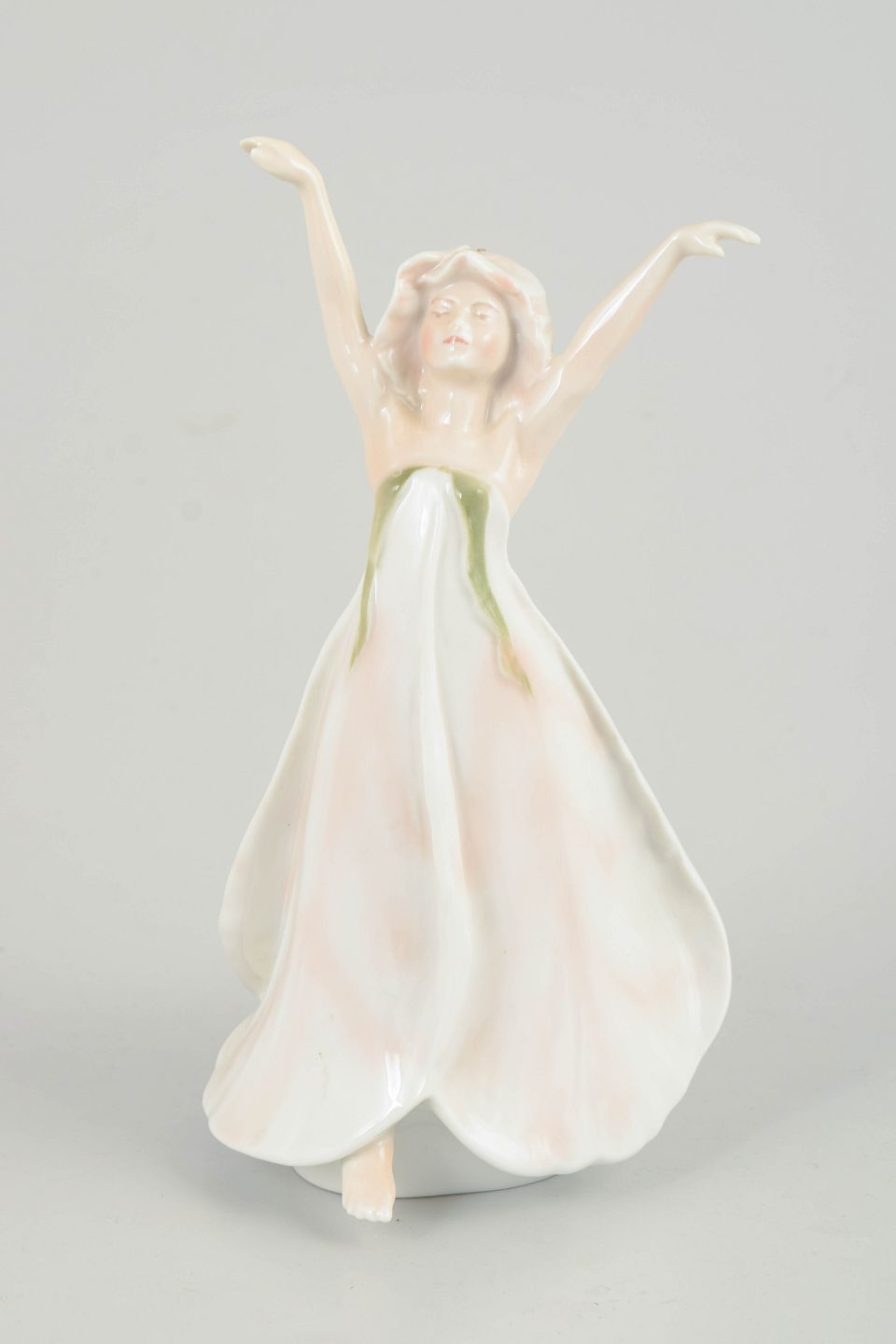Porcelænsfigur forestillende Den Lille Idas Blomster, udført for H.C. Andersen Samlingen. Figuren er modelleret som en ung pige med løftede arme og svajende kjole i bløde hvide og rosa nuancer med diskrete grønne accenter. Undersiden er mærket Den Lille Idas Blomster, Nr. 1345/2500, hvilket angiver et begrænset oplag.