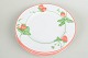 Sæt på fire middagstallerkener i porcelæn med dekoration af jordbær og blade samt grøn og rød kant i serien Fraise.