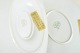 Sæt i hvidglaseret porcelæn med forgyldt kant og geometrisk bort i art deco-stil; modeller 317 og 316.