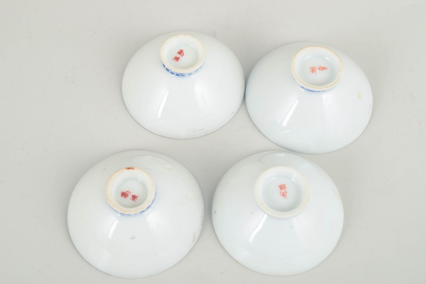 Sæt med 4 små kinesiske porcelænsskåle, hånddekorerede.