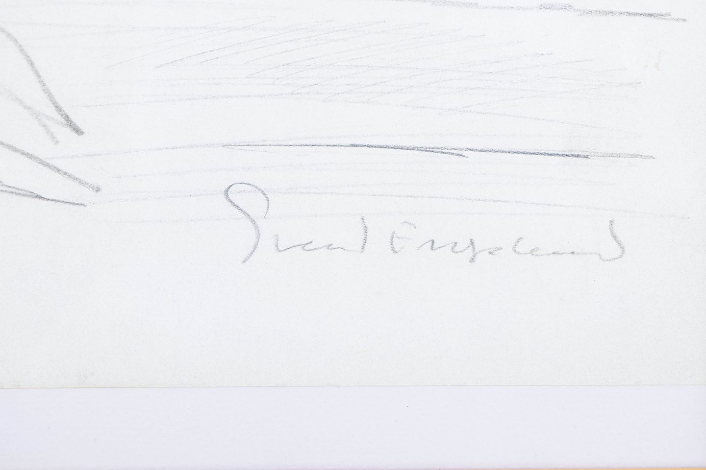 Dansk landskabsmotiv udført som blyantstegning med let abstraheret komposition og rolige, horisontale linjer.