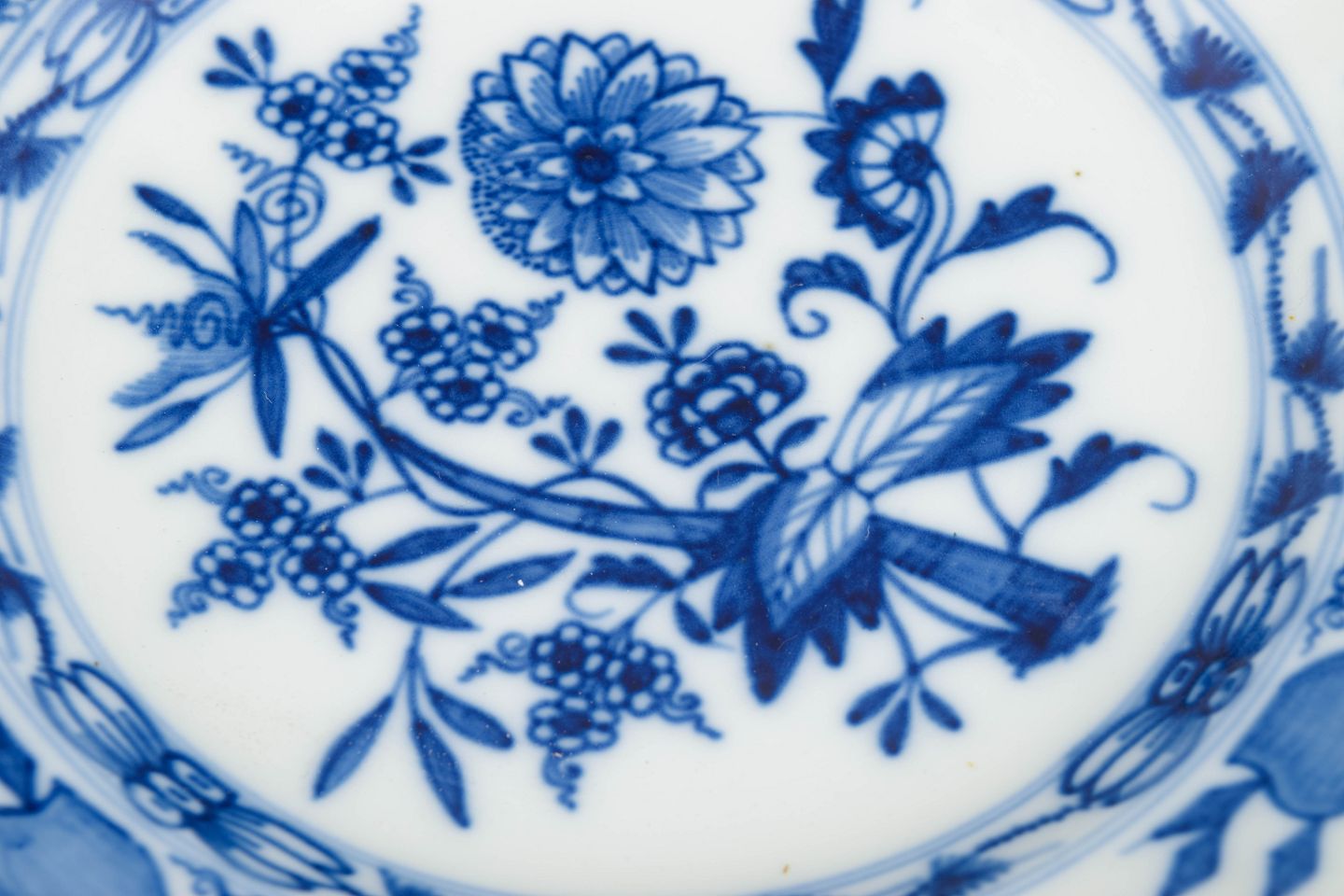 The Blue Onion pattern was introduced by Meissen in 1739 and was inspired by East Asian porcelain, featuring stylised floral and fruit motifs rendered in underglaze blue. It became one of the manufactory’s most enduring tableware designs. Around 1900, Meissen continued producing Blue Onion services of consistently high quality, with dinner plates forming a key part of the service and reflecting the manufactory’s long-standing standards of craftsmanship and decorative clarity.