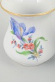 Small baluster-shaped miniature vases in white porcelain, decorated with hand-painted polychrome floral bouquets and finished with a gilt rim. Marked to the base with the Meissen crossed swords.
