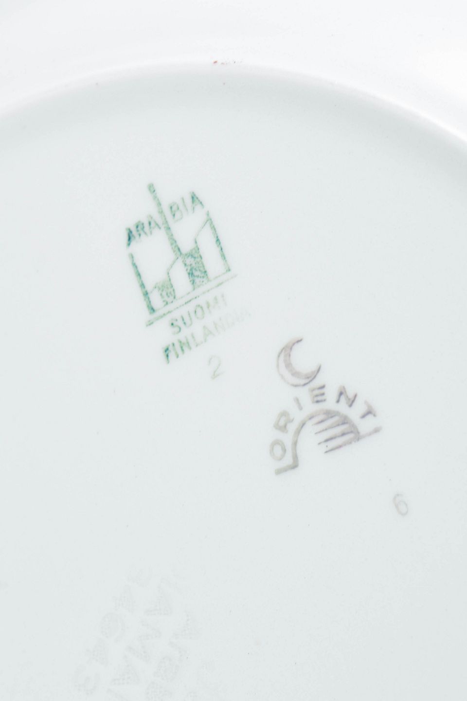 Arabias Art Deco-produktion i 1930’erne er kendetegnet ved en klar formgivning, fine linjedekorationer og høj teknisk kvalitet. Orient-serien kombinerer funktionelt bordtøj med stiliserede, orientalsk inspirerede motiver, hvilket afspejler tidens internationale strømninger og gør serien til et markant eksempel på finsk keramik fra mellemkrigstiden.
