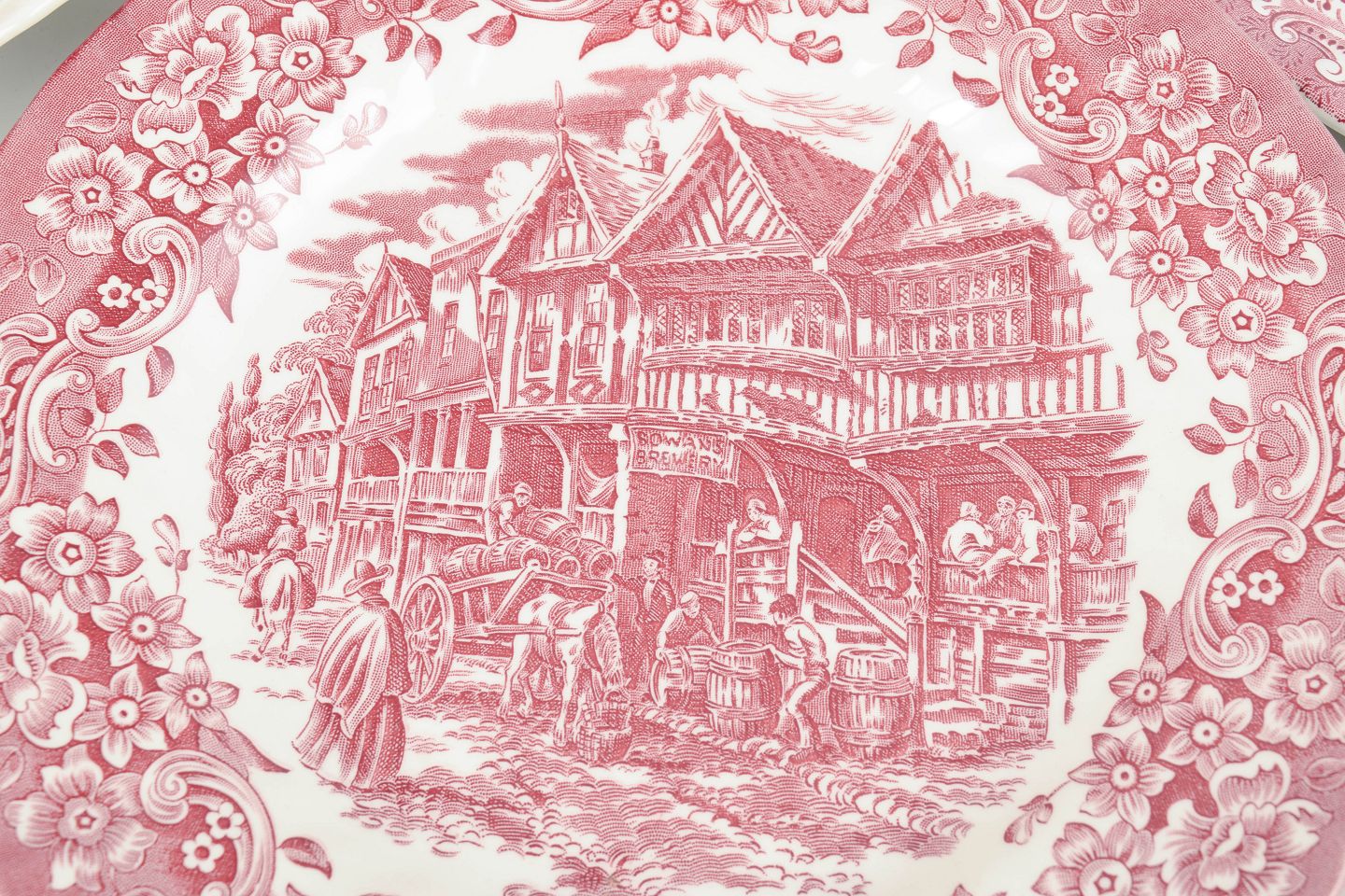 Engelsk fajanceproduktion i mellemkrigstiden var præget af en stærk tradition for transferware-dekoration, især i Staffordshire-området. Fabrikker som Mason’s, Royal Warwick og beslægtede producenter fremstillede servicevarer med detaljerede landskabs- og historiske motiver. Disse tallerkener var tiltænkt daglig brug, men er i dag eftertragtede for deres dekorative kvalitet og tydelige tidsudtryk.