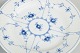 Sæt på 4 middagstallerkener i hvidt porcelæn med håndmalet koboltblå musselmalet riflet dekoration. Model 1/575.