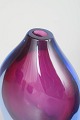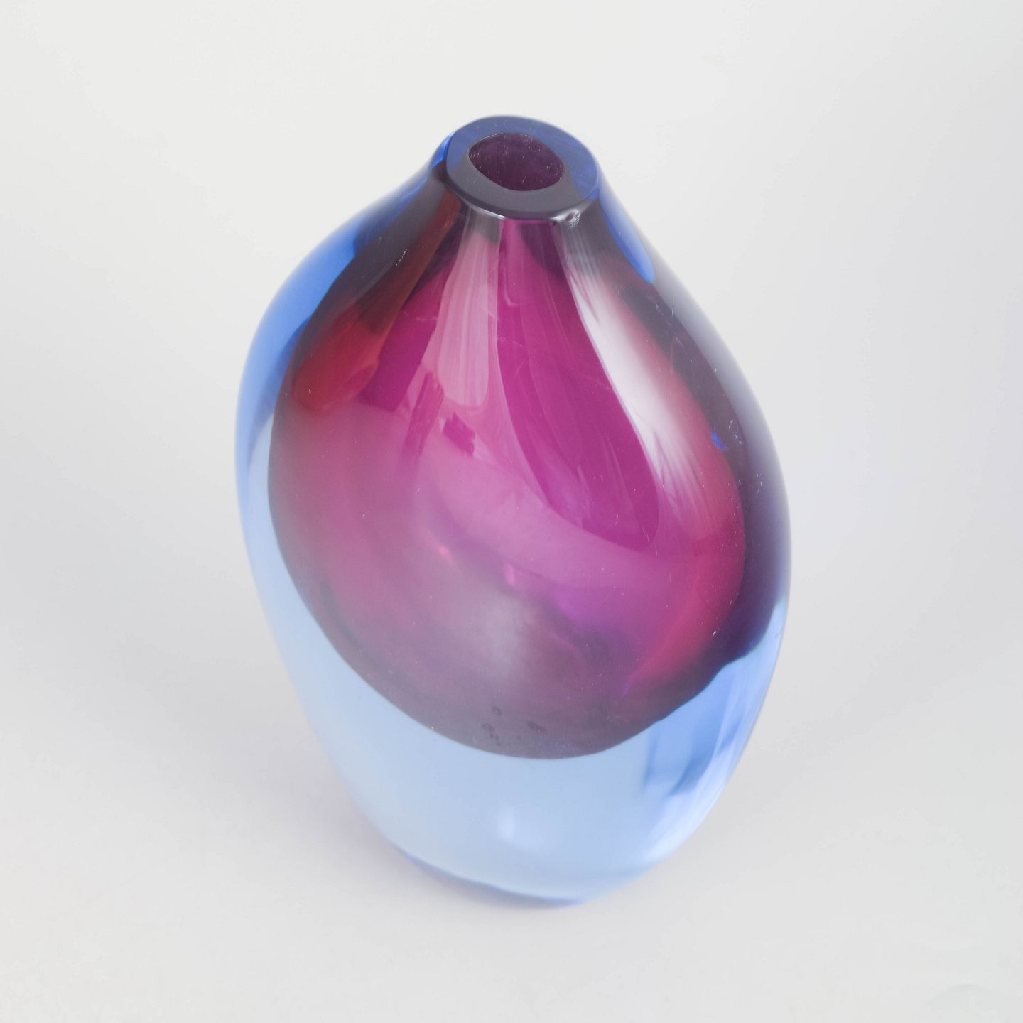 Decorative art glass vase in clear blue glass with encased pink core and softly organic form, produced in the characteristic Murano style using layered glass.