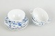 Tre tekopper med tilhørende underkopper i porcelæn med håndmalet dekoration i underglasurblå i det klassiske Musselmalet Riflet mønster. Model 1/315. Første sortering.