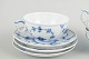 Royal Copenhagen Musselmalet Riflet, sæt af tre tekopper med underkopper.
