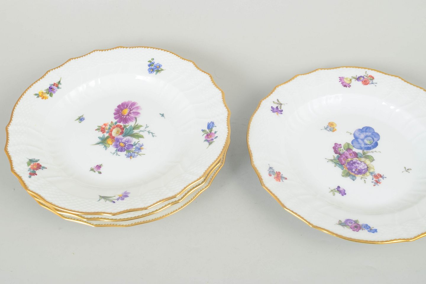 Royal Copenhagen Saxon flower, set of four dinner plates.