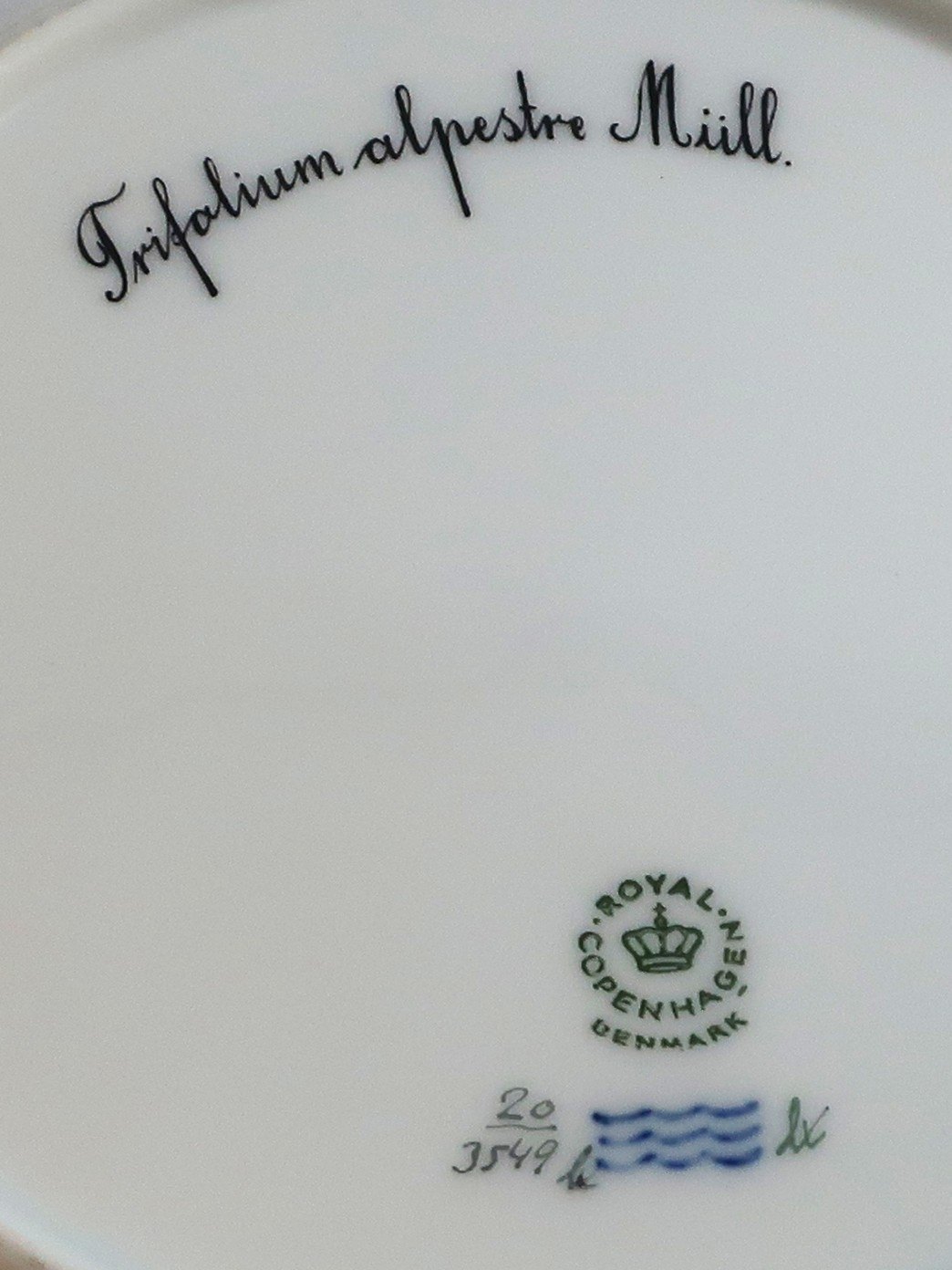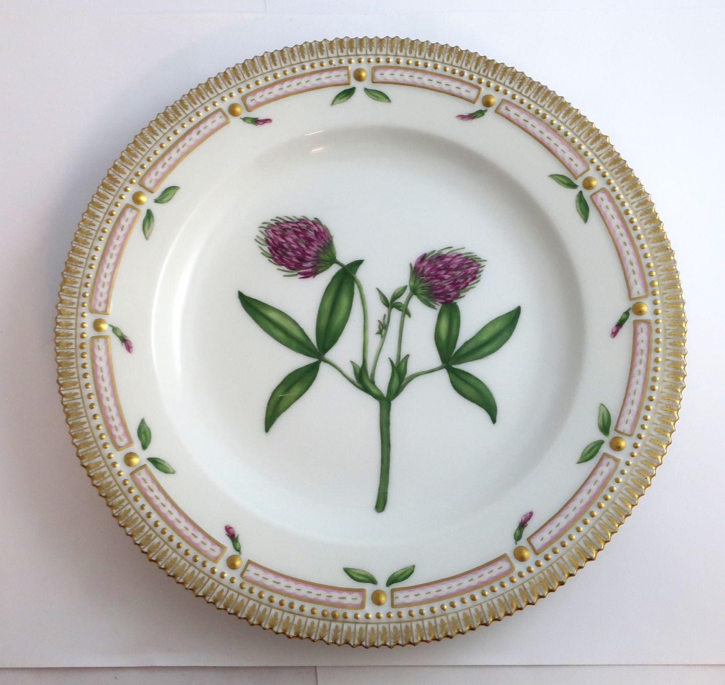 Royal Copenhagen Flora Danica. Menüe Teller. Entwurf # 3549. Durchmesser 25 cm. (1 Wahl). Trifolium alpestre Mill