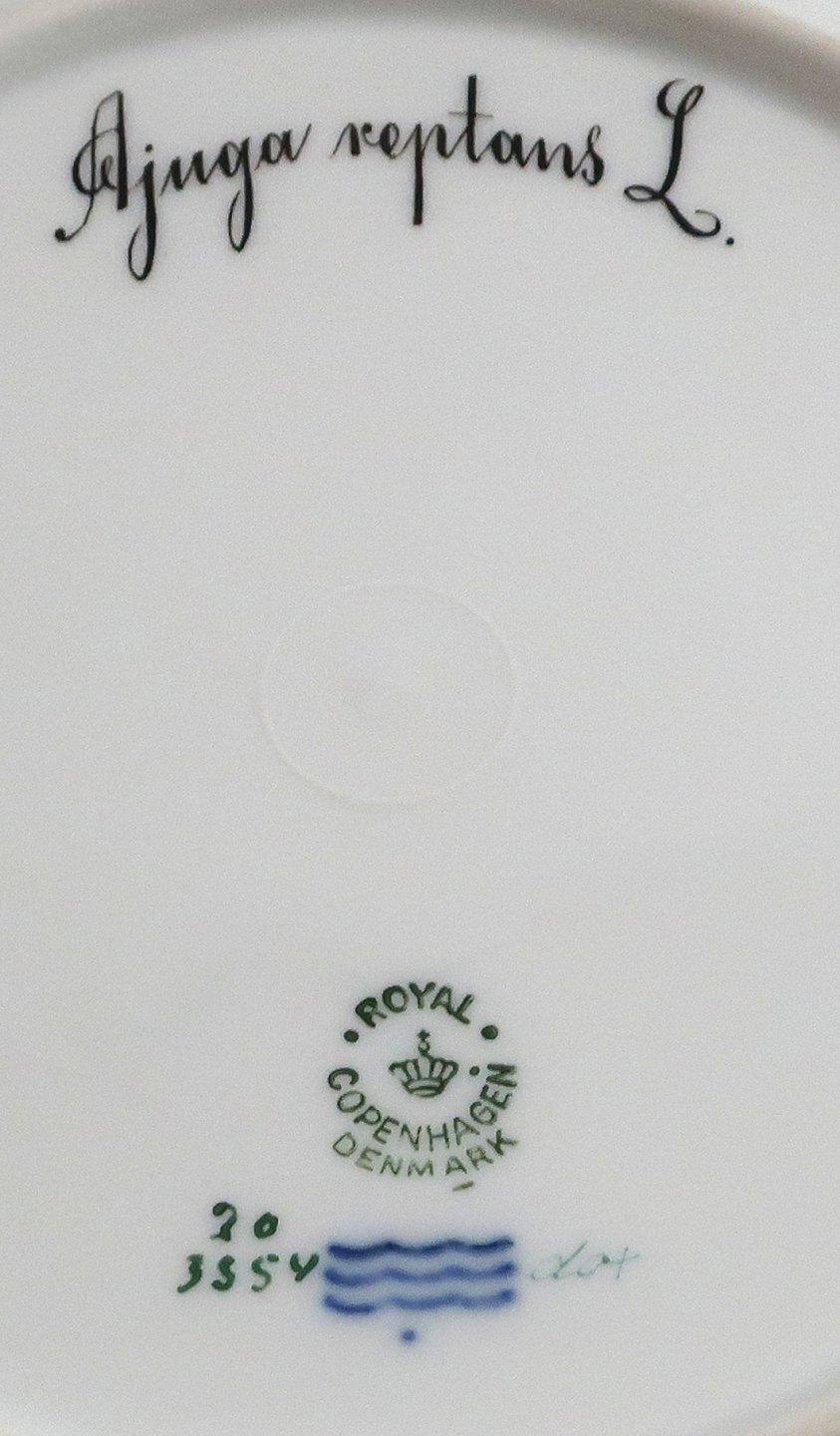 Royal Copenhagen, Flora Danica. Frokost tallerken med gennemskåret bort. Design #3554. Diameter 23 cm. (1 sortering). Ajuga reptans L