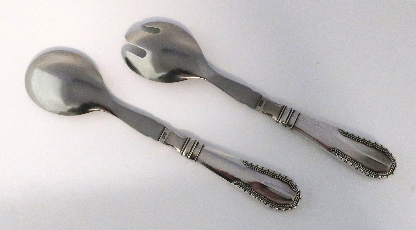 Georg Jensen. Viking. Sterling salad set with steel (925). Length 21.5 cm. Produced 1933-1945.