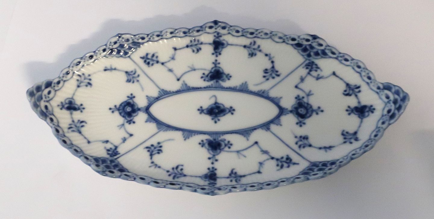 Royal Copenhagen. Blå blomst, flettet. Ovalt fad.