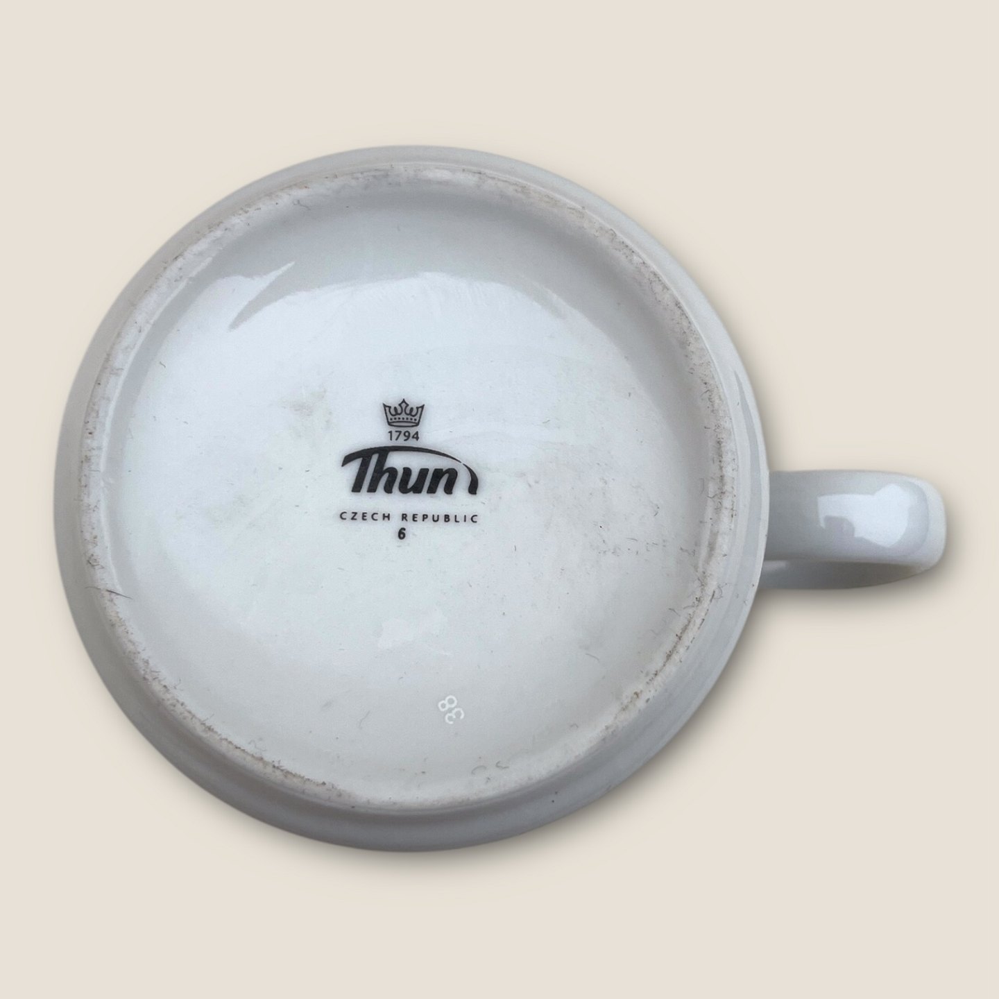 Mads Stage, Christmas mug, Santa with cat, 9cm high, 8cm in diameter, Thun *Good condition*