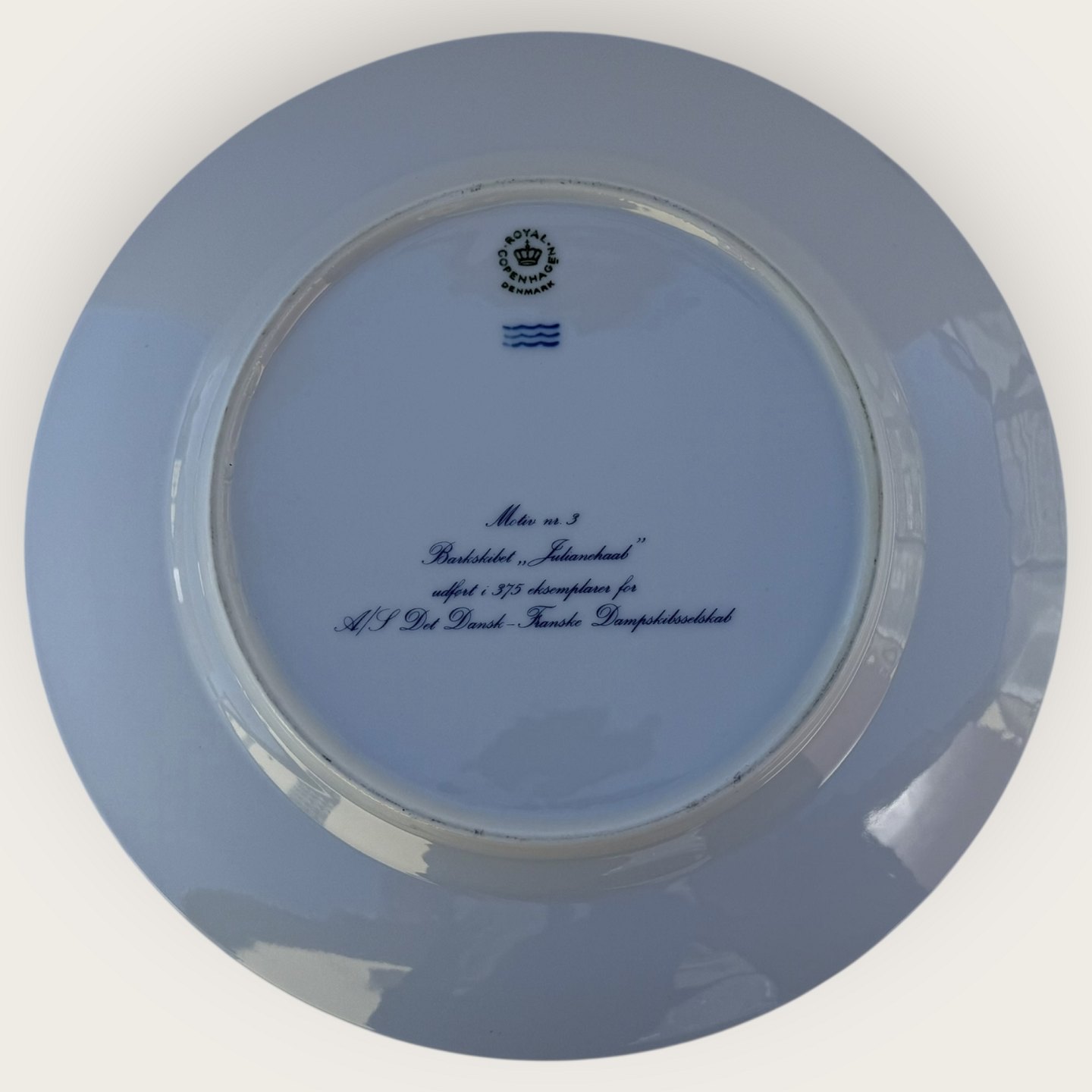 Royal Copenhagen, Motif 3, Barque ship Julianehaab, Made in 375 copies for A/S Det- Dansk-Franske Dampskibsselskab, 25cm in diameter, perfect condition