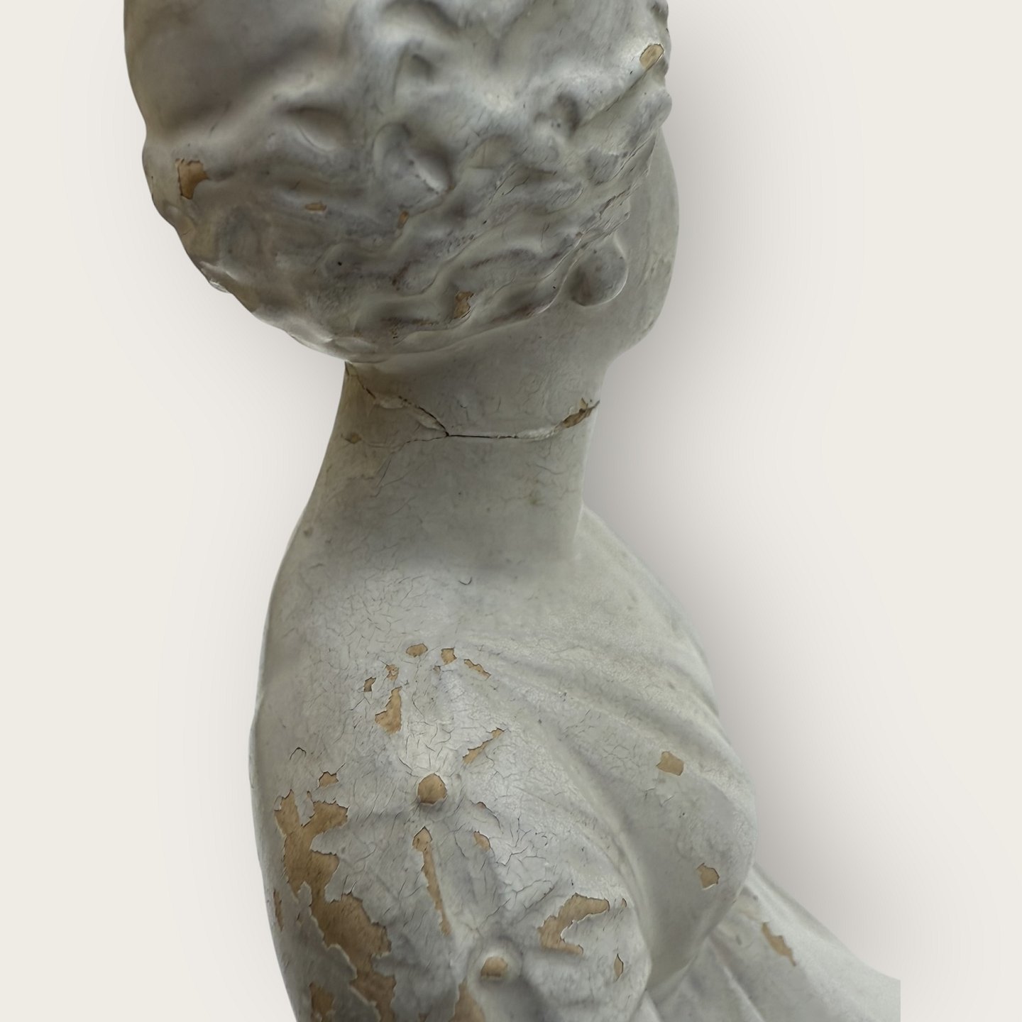 Older female figurine from Hjorth ceramics, Stamped: Hjort, 564, Exclusive, Measures approx. 23.5x12x11 cm, Has repair on the neck (see photo) and light peeling / patinated.